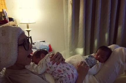 台湾艺人范玮琪与老公陈建州1月迎来双胞胎儿子,随后,他们经常在微博分享帮孩子洗澡等点滴细节。昨日,范玮琪在微博晒出抱着两个宝宝的照片,并留言找到合适的姿势抱他们很满意。