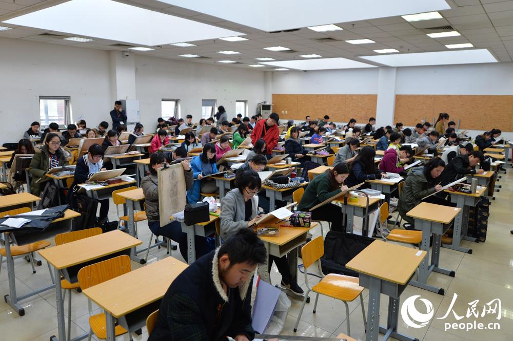 2月26日上午,报考动画学院的考生正在进行专业考试。(人民网记者 翁奇羽 摄)