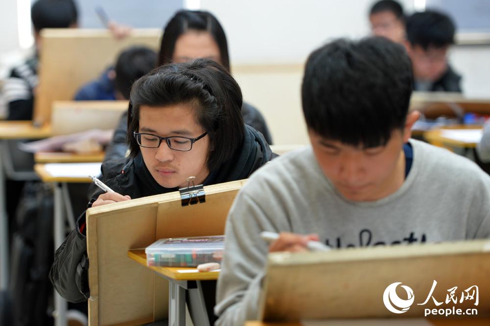 2月26日上午,报考动画学院的考生正在进行专业考试。(人民网记者 翁奇羽 摄)