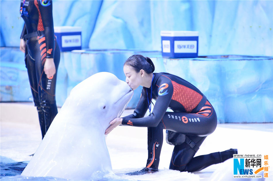 倪妮动作流畅似美人鱼 热吻白鲸上演水上华尔兹