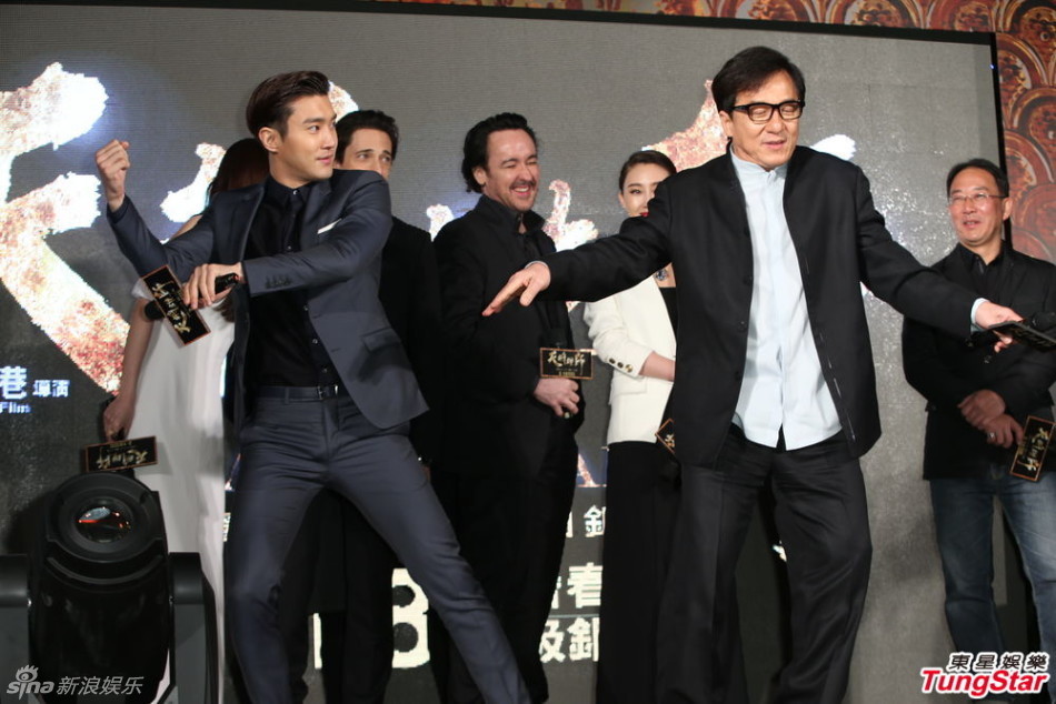 而全场焦点似乎落在人气最高的始源,只要他稍有动静,近百粉丝们尖叫声就此起彼落,让成龙似乎相当吃味,他更开玩笑说:“这是彩排好的吗?”,不甘心与始源粉丝们互动起来,问到“我帅吗?”粉丝此时还很给大哥面子尖叫答应,但当成龙提问“最帅是谁?”,粉丝们大喊“始源”,让成龙尴尬笑回:“下部戏,会再考虑始源!”,逗得全场笑声不断。
