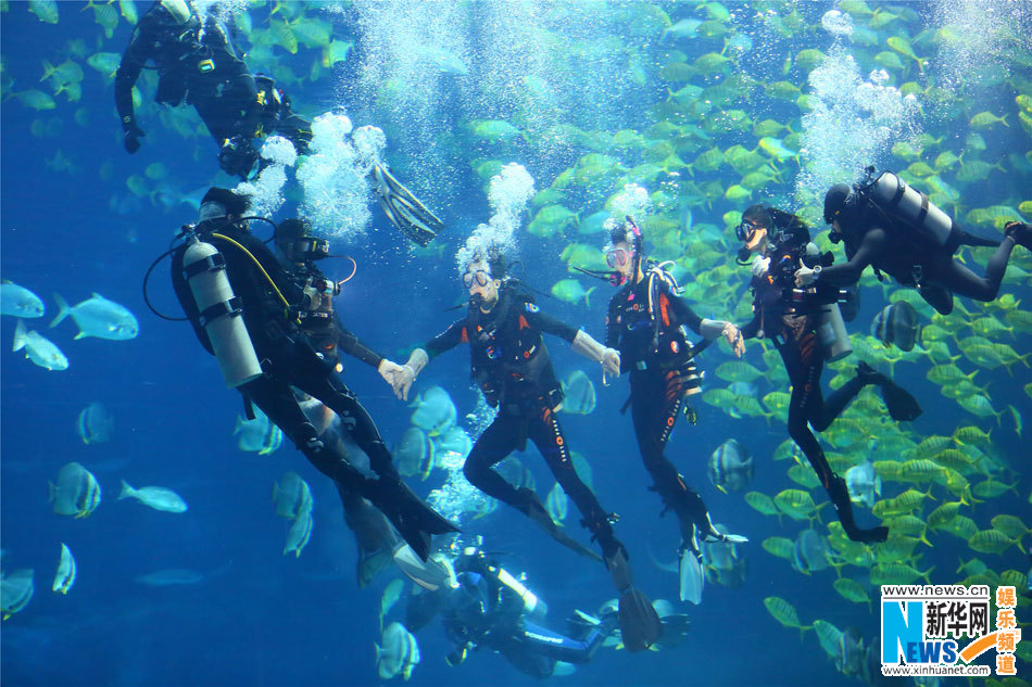 倪妮李宇春胡杏儿潜水手拉手 入深水与鲸鲨互动