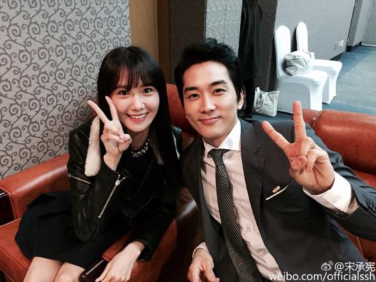 新浪娱乐讯 3月3日,韩星宋承宪[微博]在微博晒一张与少女时代成员允儿的合照,并留言:“With Yoon A(和允儿)[耶]”。照片中,两人都冲镜头微笑并比出剪刀手,俊男靓女颜值爆表。