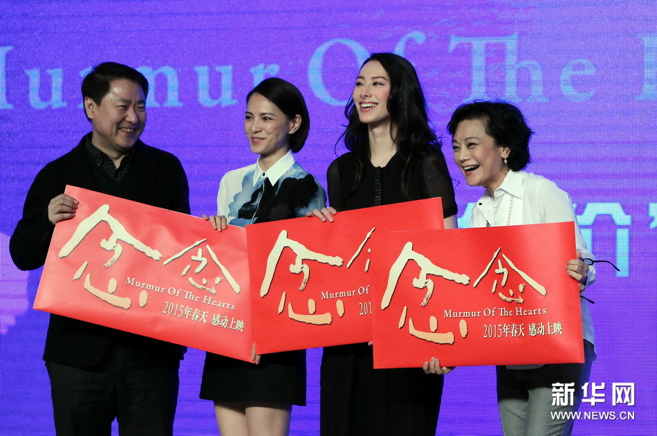 3月4日,张艾嘉(右一)、梁洛施(右二)、李心洁(左二)和博纳影业集团董事长于冬出席《念念》北京新闻发布会。新华社记者高静摄