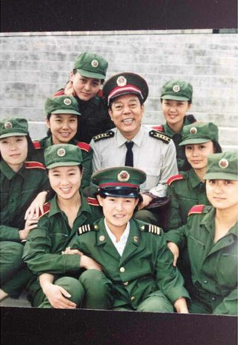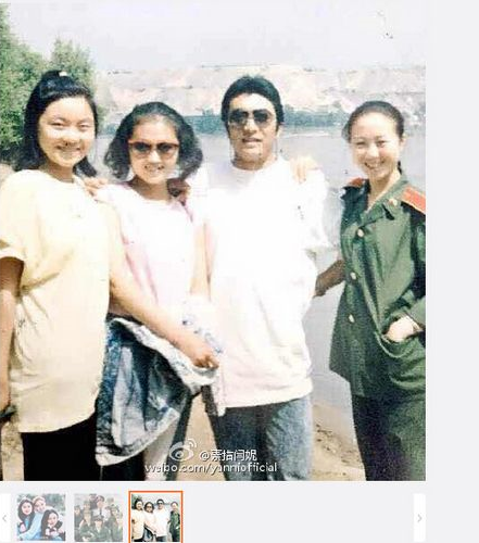 照片中,身着军装的闫妮长发飘飘,面带笑容,浑身洋溢着青春气息。