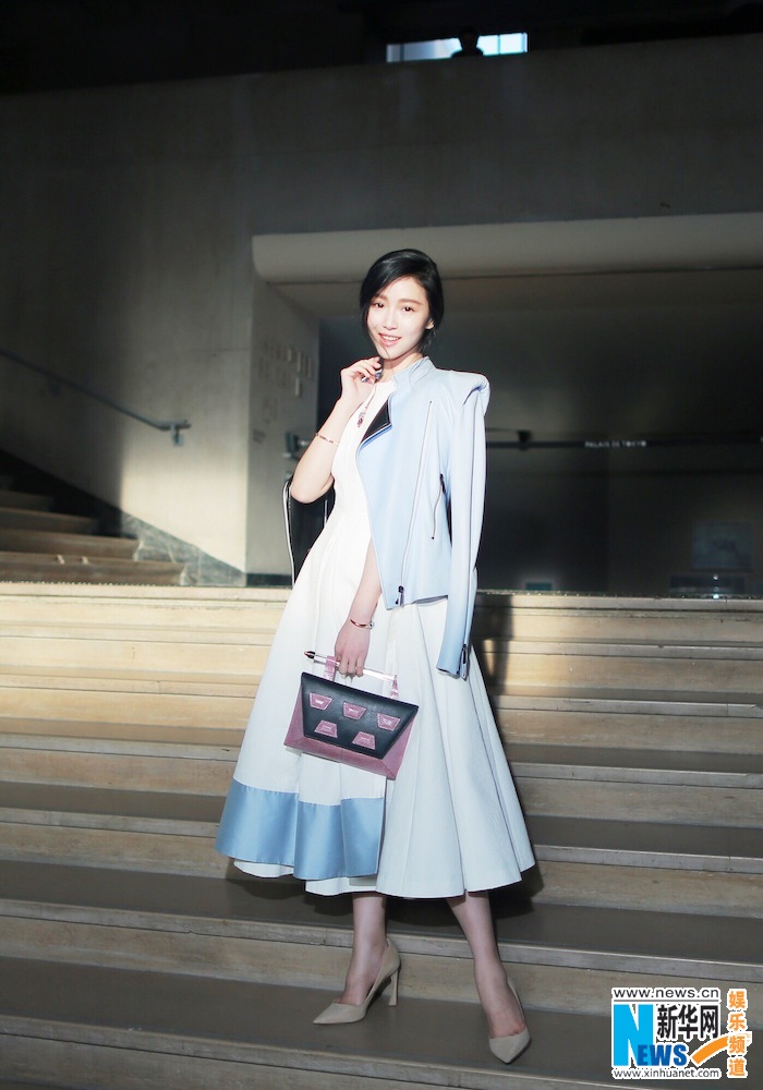 组图:演员张辛苑改走清新路线 轻松亮相巴黎秀场