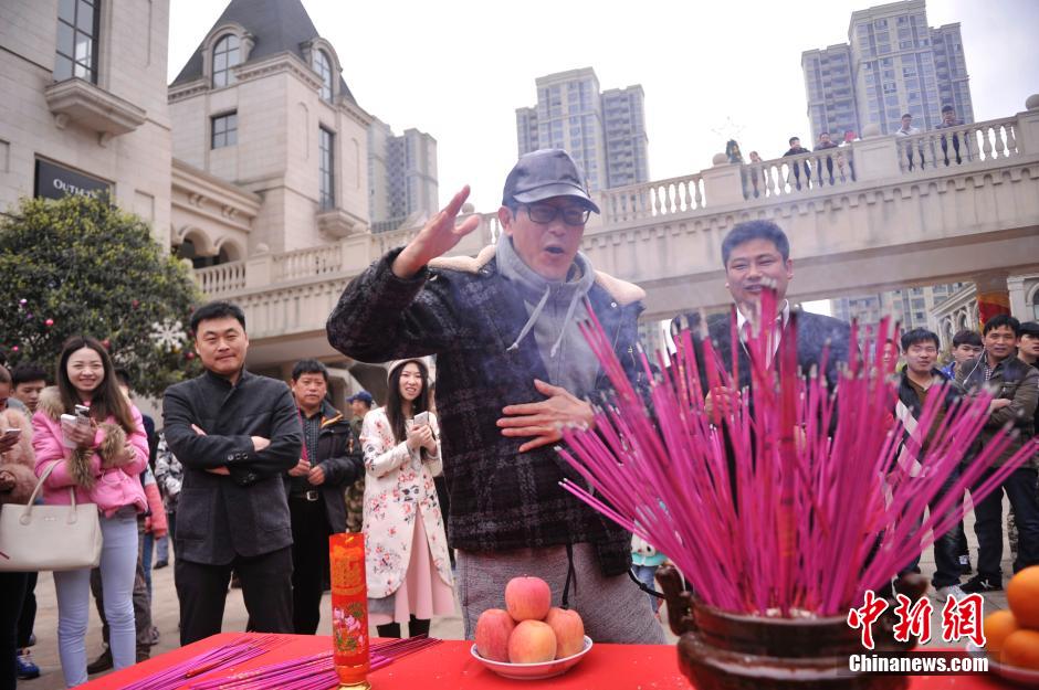 3月8日,电影《恋爱教父》在重庆正式开机拍摄,导演周智勇、主演明道和矢野浩二等剧组成员进香祈福。《恋爱教父》是一部爱情麻辣喜剧电影,讲述了三个失恋、失业、不得志的“渣男”分别因女人砸了饭碗,于是三个男人决定结盟替彼此报仇。从此,三个男人在惊心动魄、笑料百出的“复仇之路”上越走越远。图为矢野浩二进香祈福。 陈超 摄