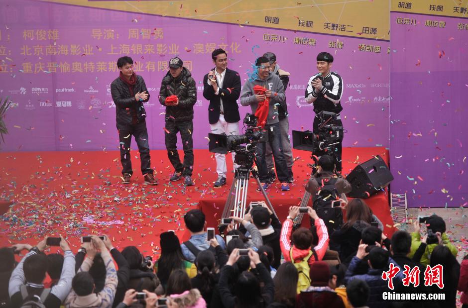 3月8日,电影《恋爱教父》在重庆正式开机拍摄,导演周智勇、主演明道和矢野浩二等剧组成员进香祈福。《恋爱教父》是一部爱情麻辣喜剧电影,讲述了三个失恋、失业、不得志的“渣男”分别因女人砸了饭碗,于是三个男人决定结盟替彼此报仇。从此,三个男人在惊心动魄、笑料百出的“复仇之路”上越走越远。图为开机仪式现场。 陈超 摄