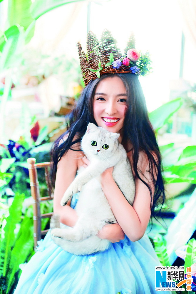 潘辰优雅清新登杂志封面 萌妹子抱萌宠灵动唯美