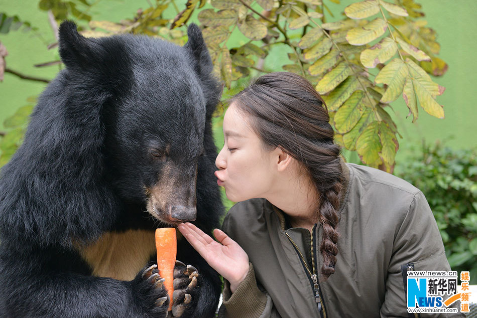 在本周六的《奇妙的朋友》节目中,倪妮将和海涛搭档一起去照看黑熊。见到猛兽的倪妮不但没有害怕,更被它憨憨的样子萌住了,连蹲在一旁喂食也不忘抱住黑熊大玩亲亲。