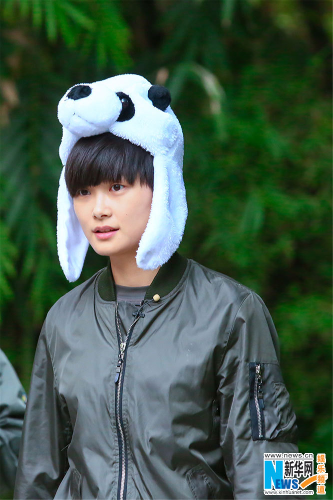 倪妮熊抱大黑熊 李宇春戴卡通帽和熊猫宝宝比萌