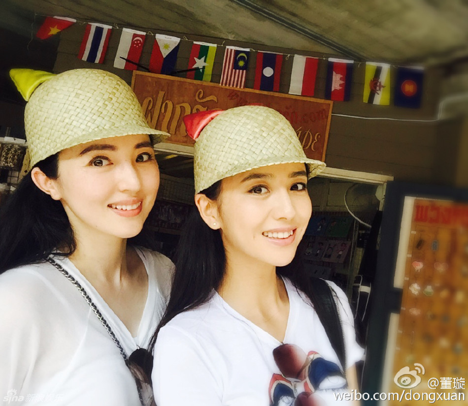 3月14日白色情人节,董璇在微博晒出和佟丽娅一起游泰国的照片,似双胞胎的两人穿上闺蜜装,一起做鬼脸拍美照。