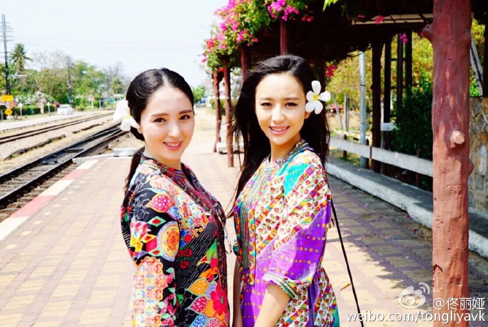 3月14日白色情人节,董璇在微博晒出和佟丽娅一起游泰国的照片,似双胞胎的两人穿上闺蜜装,一起做鬼脸拍美照。