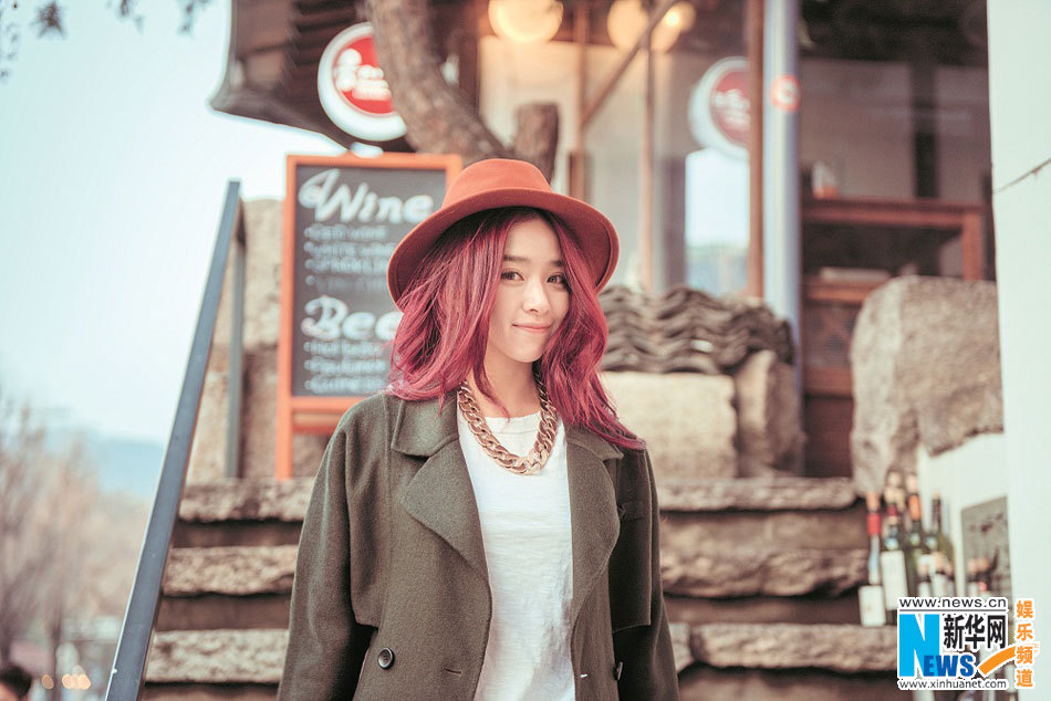 阚清子异国街拍 红发飘飘变“帽子控“(图)