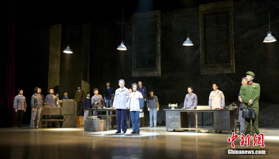 大型话剧《小平小道》4月1日至3日在小平小道故事发源地南昌连续演出。《小平小道》是一部反映邓小平同志在江西新建县拖拉机修配厂劳动生活的话剧。在3年多的时间里,邓小平从住地到工厂之间来回往返,在荒坡上走出一条新路,被后人称之为“小平小道”。图为邓小平下放后第一次进拖拉机场,监管干事黄干事向大家介绍他。匡大镇 摄