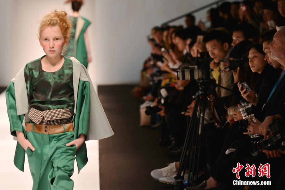 4月8日,上海黄浦区,模特在上海时装周“2015秋冬作品发布”首日活动上走秀。4月8日,上海时装周2015秋冬作品发布从新天地太平湖水上秀场再度起航,4月8日至15日期间将呈现近50场多元风格的国内外时装设计师和品牌作品发布秀。中新社发 袁婧 摄