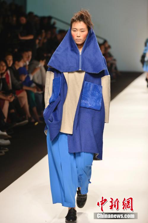 4月8日,上海黄浦区,模特在上海时装周“2015秋冬作品发布”首日活动上走秀。4月8日,上海时装周2015秋冬作品发布从新天地太平湖水上秀场再度起航,4月8日至15日期间将呈现近50场多元风格的国内外时装设计师和品牌作品发布秀。中新社发 袁婧 摄
