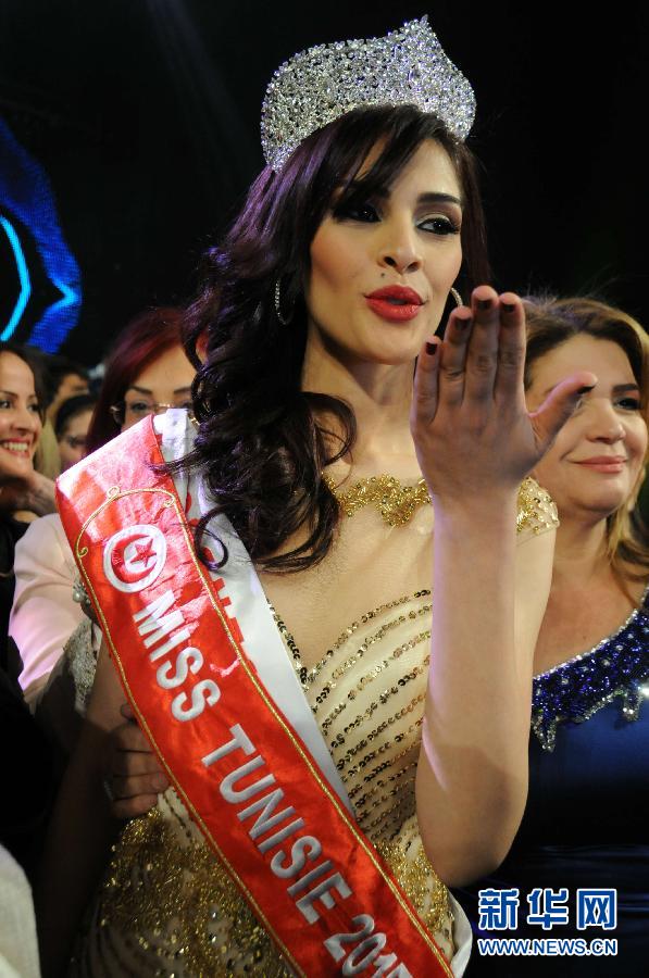 7日,2015年“突尼斯小姐”大赛在突尼斯市立剧院落下帷幕。来自坚杜拜省的拉维娜·杰贝里夺得本届“突尼斯小姐”桂冠。新华社发(阿代尔摄)