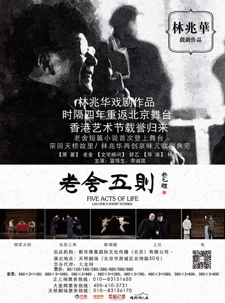 5月1日到3日,由“大导”林兆华执导,戏骨雷恪生、李诚儒等领衔主演的京味儿戏剧典范《老舍五则》,在阔别首都观众四年之后,再度回归,将在天桥剧场以浓浓的京味说尽人生悲欢。