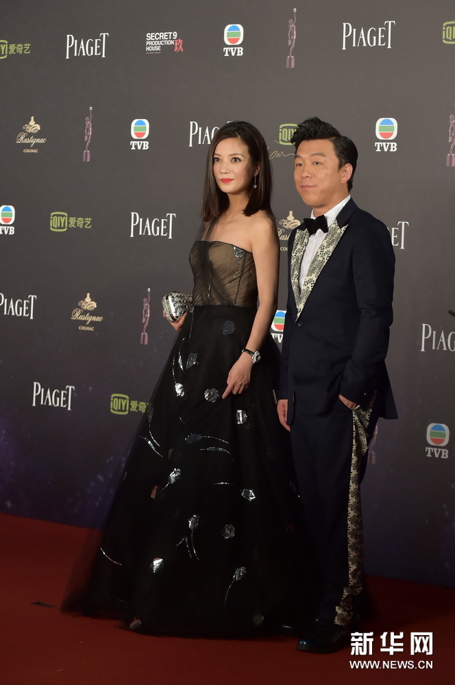 4月19日,演员赵薇(左)和黄渤亮相金像奖红毯。新华社记者 何靖嘉 摄