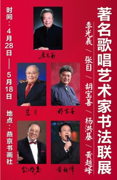由燕京书画社主办的“传承文化 翰墨真情” —著名歌唱艺术家书法联展,将于4月28日在位于北京天坛东路的燕京书画社开幕。