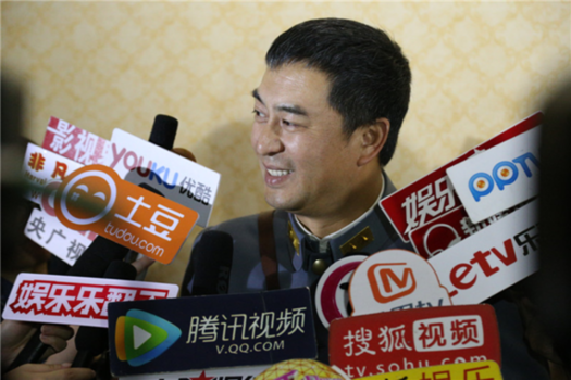 何晟铭带领小分队成员接受采访 为《生死黎平》助威