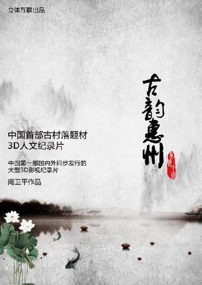 《古韵惠州》由深圳立体互联文化传媒科技有限公司(简称:3D互联)拍摄完成,历时一年的拍摄期,现已完成拍摄和后期剪辑,即将正式与观众见面。《古韵惠州》的记录行程达12000公里,采用全实景拍摄的方式,整个过程分3个拍摄阶段。从春、夏、秋、冬及各个节庆、祭祀等活动,全方位展示惠州古村落的人文风情。《古韵惠州》开创了国内多个第一:中国第一部全程实景3D拍摄的纪录片;中国第一部以3D形式表现古村落人文文化的纪录片;中国第一部国内外同步发行的大型3D影视纪录片。该片荣获2013年中国3D影视作品电视专题类二等奖,在国内外引起了广泛关注。这部代表了中国3D纪录片最高水准的影片,从立项阶段开始就受到了广大媒体的关注,中央电视台、北京电视台、深圳电视台、惠州电视台、《南方都市报》、央视网、凤凰网、新浪、搜狐、网易、腾讯等主流媒体纷纷在第一时间跟踪报道拍摄进程,引起了持续性的的社会热议。