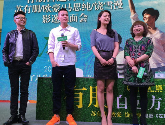由苏有朋导演的青春片《左耳》将于4月24日上映,近日男一号欧豪、吧啦的扮演者马思纯与导演苏有朋和编剧饶雪漫,在杭州举行校园行活动和签售会。活动现场欧豪不仅与粉丝热情互动,更与马思纯现场表演电影中的经典桥段,惹得观众疯狂尖叫。