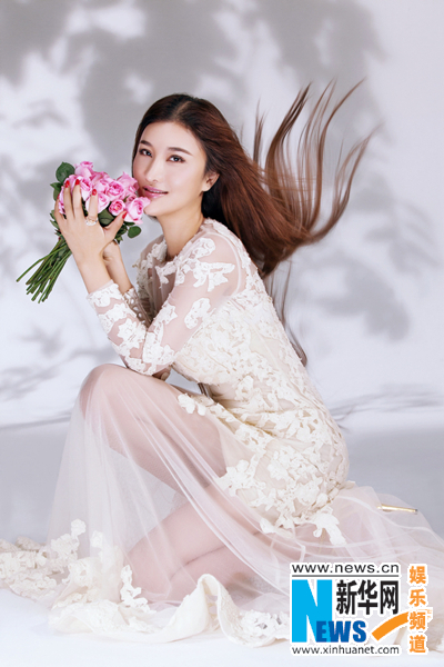 张虹一写意婚纱大片曝光 长发飘飘纯净优雅