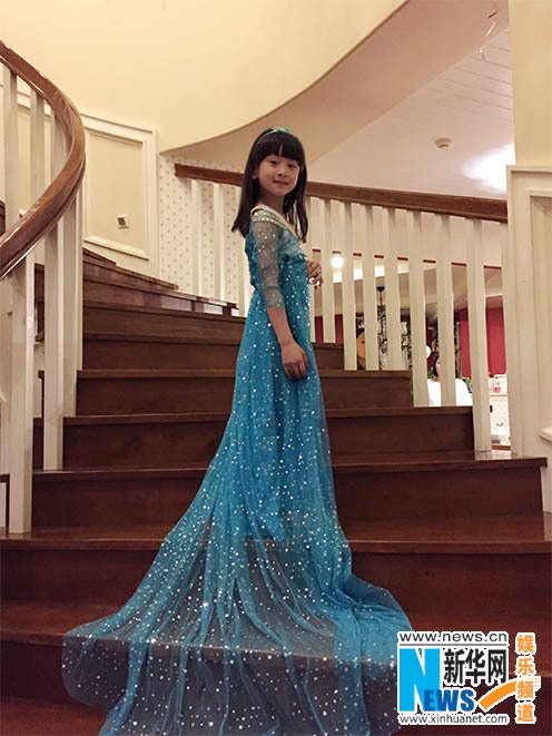 昨日,田亮在微博上晒出一张女儿森碟美照。照片中森碟穿着迪士尼动画片《冰雪奇缘》中艾尔莎的同款衣服站在楼梯台阶上,长长的裙摆拖在身后,小学女生秒变冰雪女王,女神范儿立显。