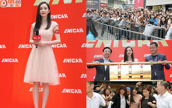 昨日(4月26日),女星杨幂突袭重庆,为其代言的品牌站台,同场出席更有品牌大中华区总裁。发布会在人流甚多的重庆解放碑广场举行,吸引过千名市民及粉丝围观,而大会早有准备,特意架起大批铁栏及安排超过三百名保安维持秩序。以连身短裙现身的杨幂,出场时即引大批市民推栏,保安奋力护栏以免市民破栏而出,而杨幂也多次呼吁大家注意安全。