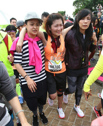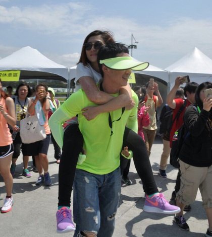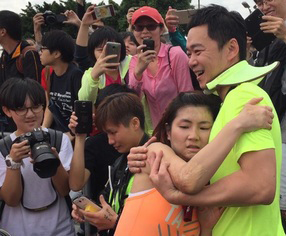 4月26日,Selina清晨5点半出发挑战WE RUN TPE 21公里半马路跑,她仅花2小时34分完成赛程,最后一段路程她高举双手迎向终点站大佳河滨公园,老公张承中则是隐身在人群中默默为她支持,她一见到阿中气力放尽,一度脚软倒卧在他怀里,由工作人员搀扶她走进休息室。