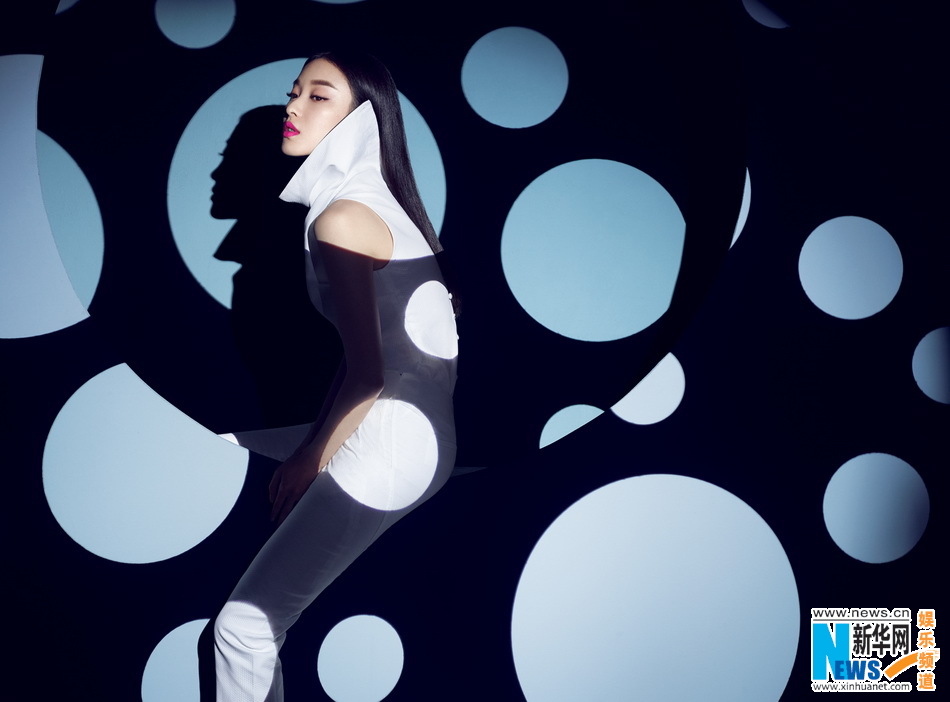 倪妮登杂志勾勒完美曲线 几何光影打造未来感
