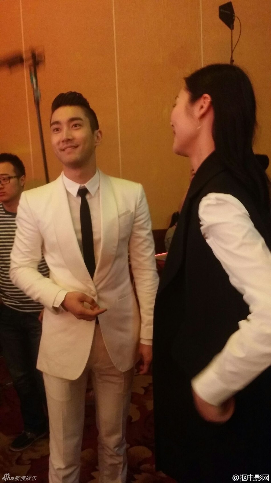新浪娱乐讯 今日,崔始源在北京出席电影《赤道》发布会,发布会刚刚结束,《我们相爱吧》节目中女友刘雯来现场接男友,二人牵手出门。