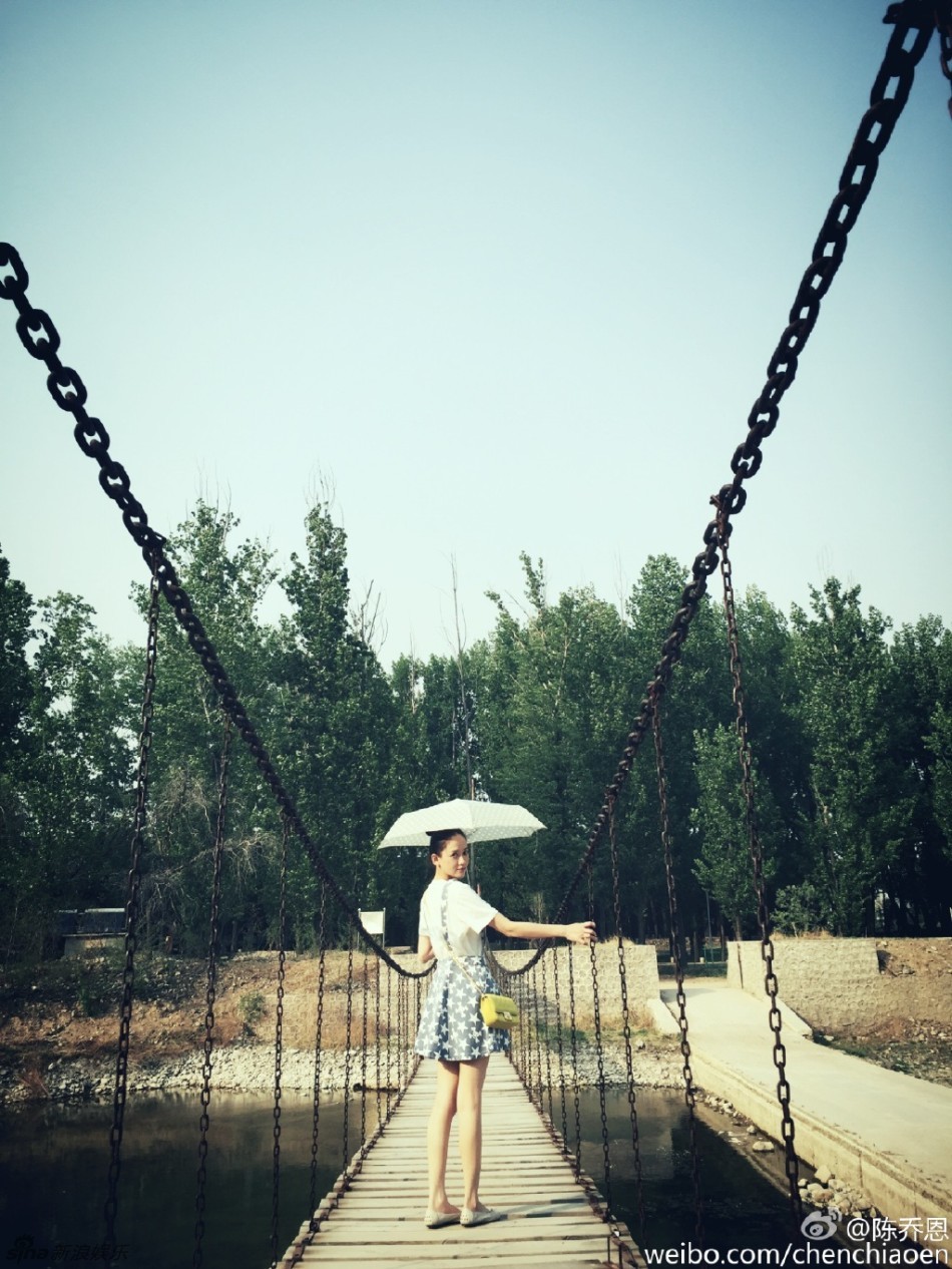 陈乔恩在微博晒出一组少女装扮的美照。穿着可爱碎花短裙的教主,大秀美腿,梳着丸子头的她更像清纯少女,甚是可爱。