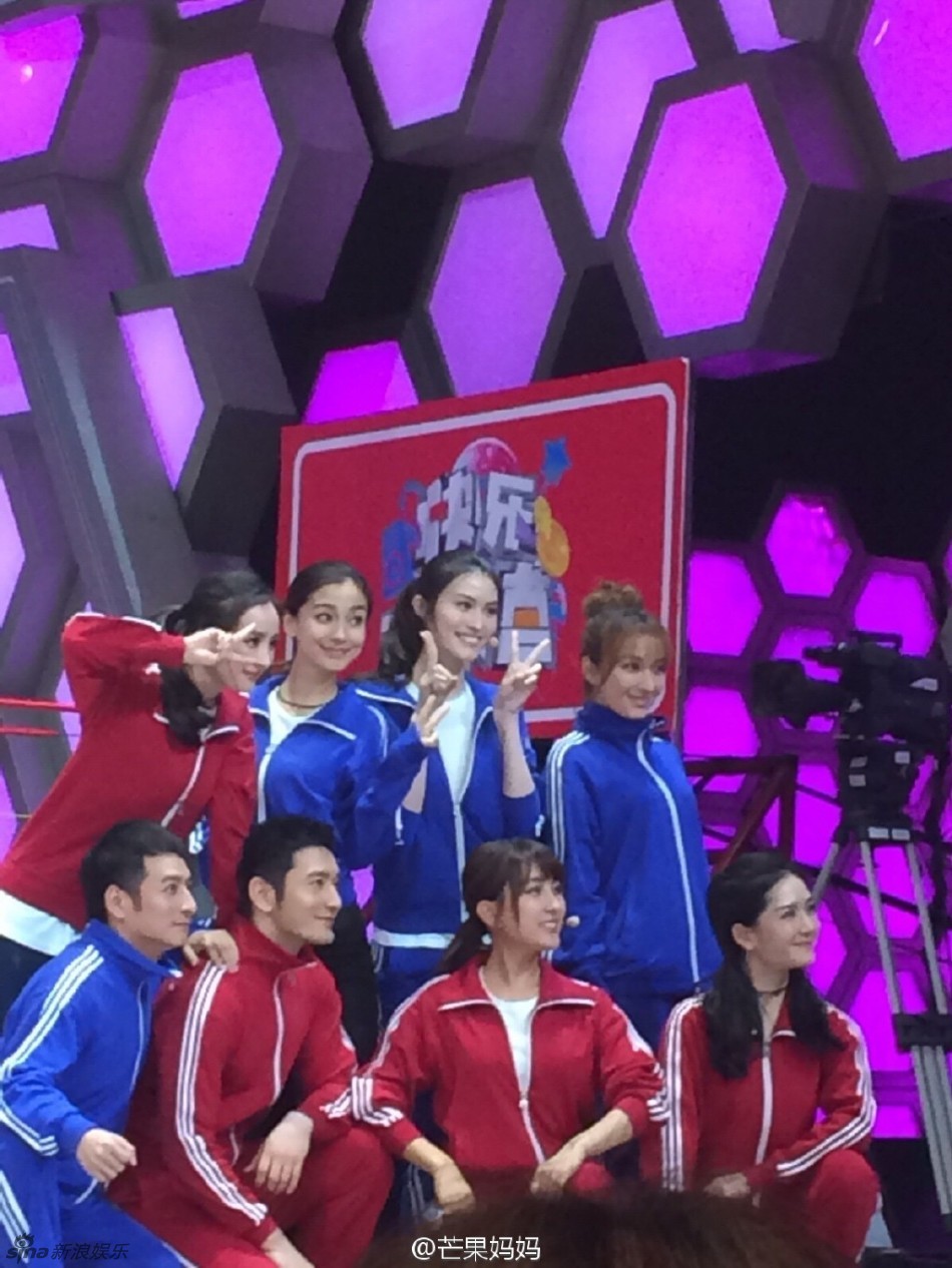 有不少网友在微博晒出电影版《何以笙箫默》剧组上《快乐大本营》的剧透照。杨幂、黄晓明、baby、马苏等纷纷亮相,运动装的女星们也是卖萌停不下来。