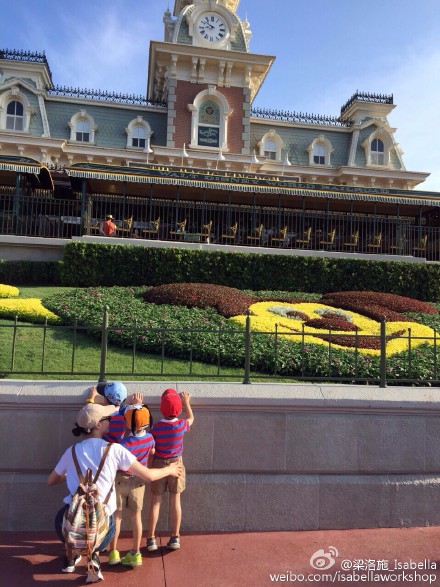 4月27日,梁洛施通过微博晒带着三子外出游玩的照片,并称:“好久没有跟大家分享!”照片中,梁洛施母子四人均戴上帽子,并以背影亮相出镜,三个儿子都穿着红蓝间条短袖衣服,配卡奇色短裤。