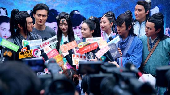 新浪娱乐讯 今日,媒体探班大型古装仙侠热血巨制《蜀山战纪》拍摄现场,吴奇隆[微博]、赵丽颖[微博]、陈伟霆[微博]、刘思彤[微博]等主演齐齐亮相。探班现场剧中“丁隐”陈伟霆和“玉无心”赵丽颖走戏对词的时手拉手,吴奇隆大叹“小鲜肉”颜值高。
