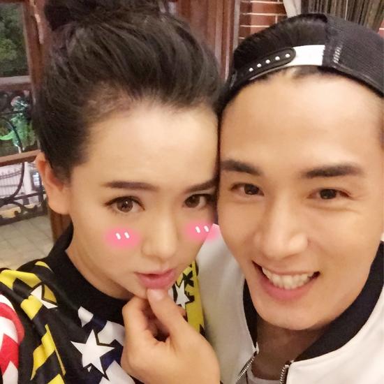新浪娱乐讯 今天(4月28日)中午,戚薇[微博]贴出一张与老公李承铉[微博]的合影,照片中,两人甜蜜贴头,李承铉笑呵呵的露出两排牙,用左手捏着戚薇的下巴,而7哥则一脸萌态,眼睛里满是娇嗔。