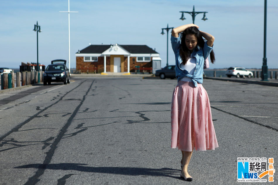 高圆圆海边自由行走 发丝飞扬笑靥如花