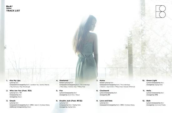 今天上午通过官方网站等渠道公开了BoA新专辑《Kiss My Lips》的12首全部收录曲目,先导曲《Who Are You》横扫音源排行榜一位,再一次将BoA的音乐才能展现在大众面前。