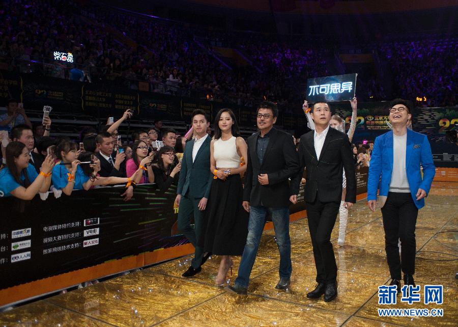 5月9日,演员大鹏(右一)、小沈阳(右二)等亮相第22届北京大学生电影节红毯仪式。当日,第22届北京大学生电影节闭幕式暨颁奖典礼在北京国家体育馆举行。 新华社记者 孟涛摄