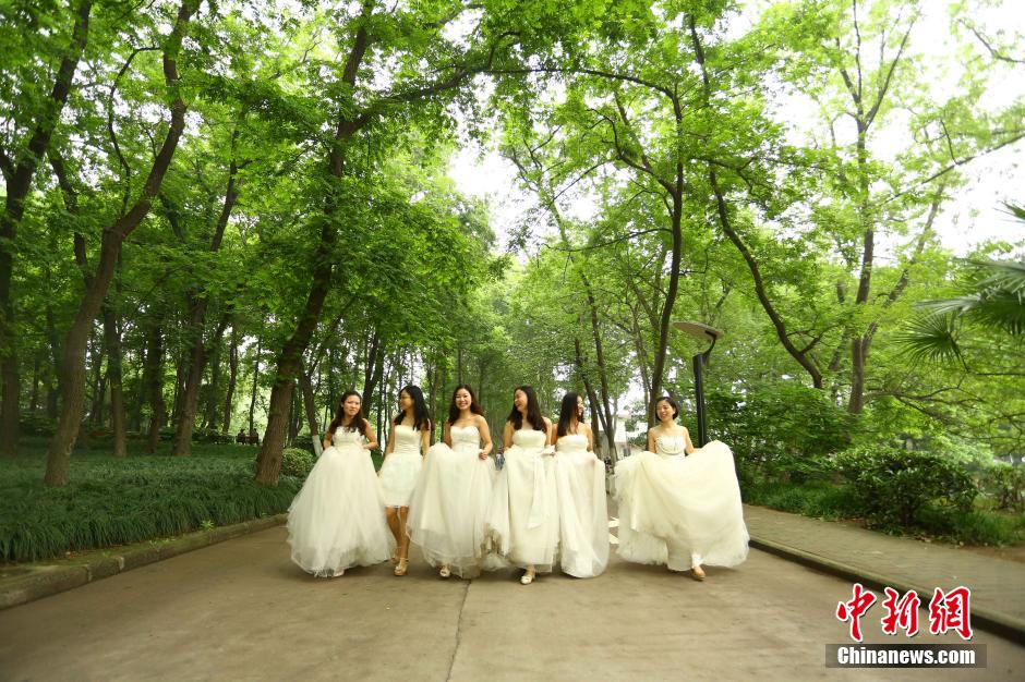5月10日,安徽大学毕业班的学生们身着各种特色服装拍摄创意毕业照。大学毕业季的到来,毕业生把毕业照玩出各种花样,汉服、制服,婚纱等服装或清纯可爱、或端庄优雅。据了解,此举是用来纪念他们即将逝去的大学时光。中新社发 韩苏原 摄