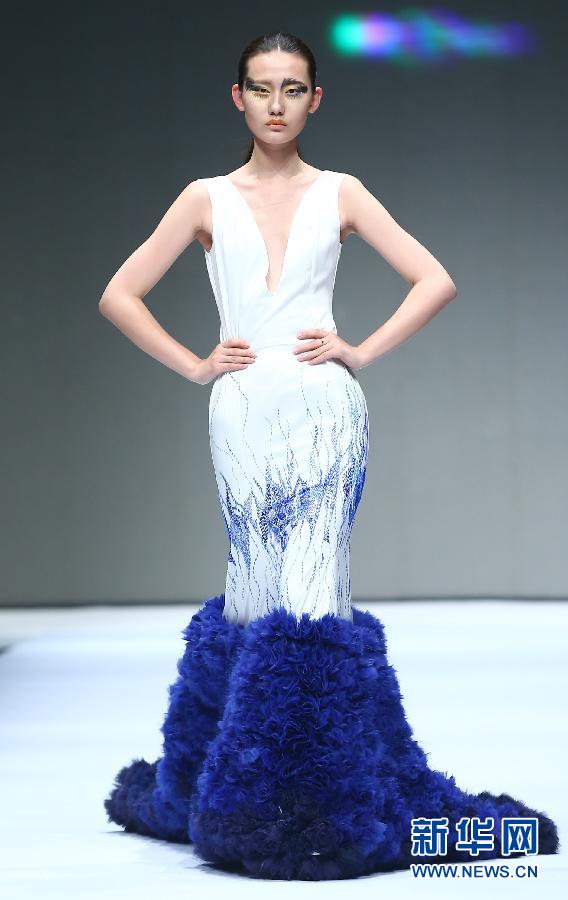 5月9日,模特在“2015杭州国际时尚周”上展示浙江理工大学科技与艺术学院2015届毕业生服装设计毕业作品。 新华社记者陈建力摄