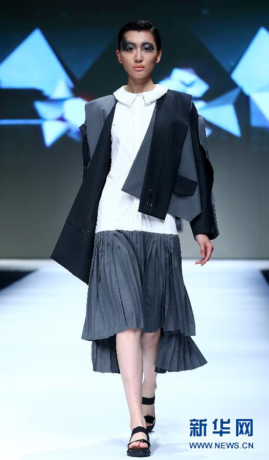 5月9日,模特在“2015杭州国际时尚周”上展示浙江理工大学科技与艺术学院2015届毕业生服装设计毕业作品。 新华社记者陈建力摄