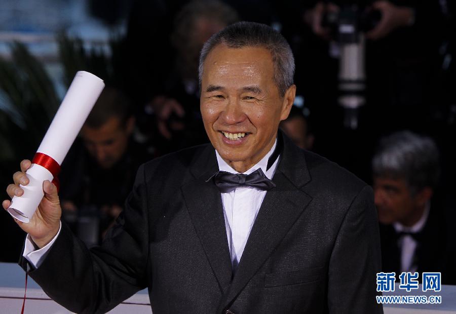 5月24日,在法国戛纳,电影《聂隐娘》的导演侯孝贤在获得戛纳电影节最佳导演奖后接受媒体拍照。