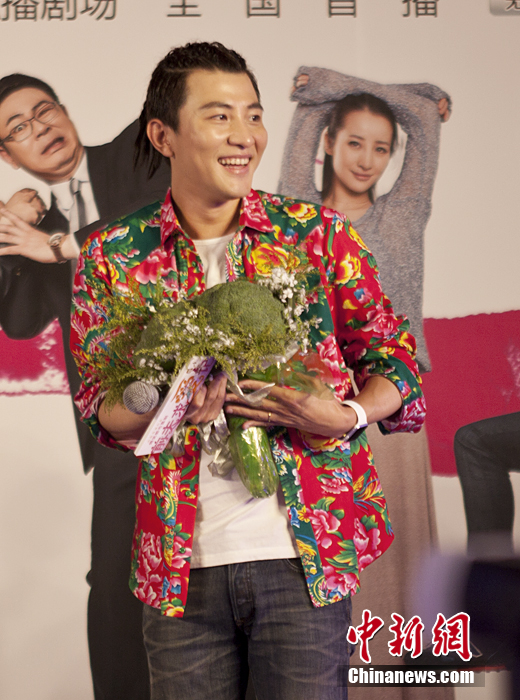 图为大左穿东北花布衬衫出席发布会。中新网记者 翟璐 摄