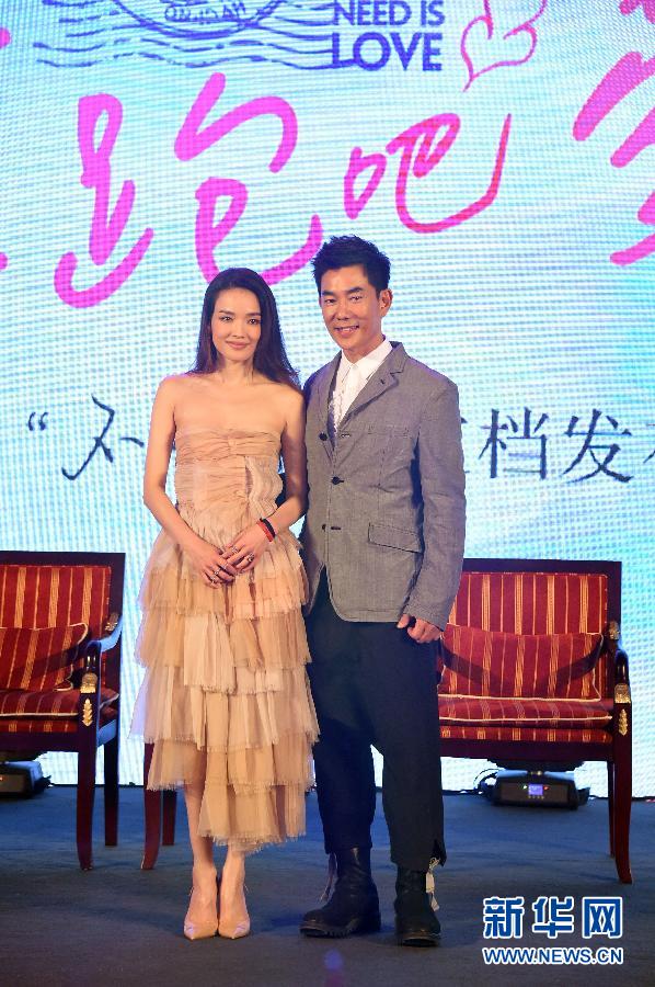 5月28日,任贤齐(右)、舒淇在北京出席电影《落跑吧爱情》的定档记者会。当日,由任贤齐自导自演、舒淇主演的爱情喜剧《落跑吧爱情》在北京举行定档发布会,电影将于8月20日“七夕”全国公映。 新华社发(吉国强摄)