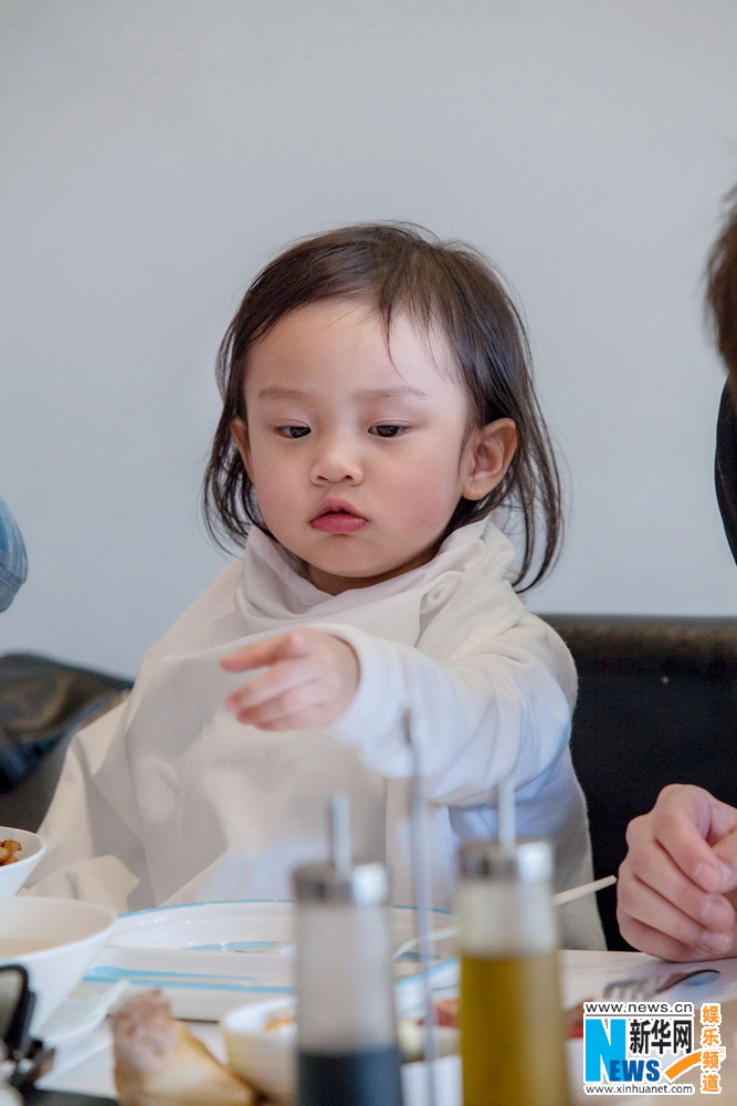 贾乃亮李小璐带女儿温馨午餐 甜馨乖巧喂妈妈