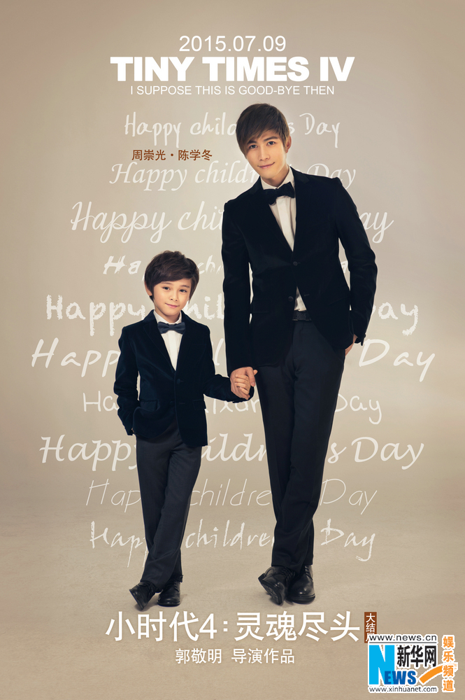 恰逢六一儿童节之际,导演郭敬明在网上曝光了一组时光版海报,海报中时代姐妹花和崇光宫洺兄弟牵手“小小时代家族们”,仿佛一下子回到了时代家族的儿时时光里。从海报中也不难看出,小林萧俏皮可爱的样子和林萧如出一辙,小顾里高傲的女王姿态也和顾里也十分神似。小崇光的英挺、小南湘的美丽、小宛如的憨态可掬、小宫洺的冷峻和原著角色还原度极高。电影《小时代4:灵魂尽头》由杨幂、郭采洁、陈学冬、郭碧婷、谢依霖领衔主演,李贤宰、锦荣、任言恺、王琳、姜潮、商侃主演,定档2015年7月9日全国公映。